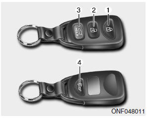 Driver's door is unlocked if the unlock button is pressed once. The hazard warning lights will blink twice to indicate that the driver's door is unlocked. All doors are unlocked if the unlock button is pressed twice within 4 seconds.